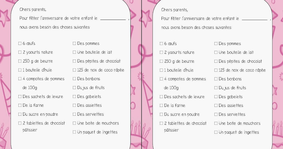 Anniversaire d'un élève gâteau maison ou industriel ?Voici le mot que je colle dans les cahiers quelques jours avant de fêter les anniversaires du mois, à destination des parents concernés Il me fait gagner beaucoup de temps, il n'y a qu'à cocher ^^